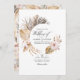 Convite de casamento boêmico com erva-pampas seca, palma, monstera, folhas de bananas e flores.