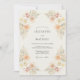 Este design apresenta um arranjo delicado de rosas suaves de pêssego e creme aninhadas entre folhagens bege discretas. A paleta de cores quentes cria um clima sereno e romântico, perfeito para um evento arejado de verão. Acentuações amarelas sutis adicionam um toque de sol à obra de arte botânica em aquarela.