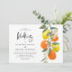 Convide familiares e amigos para o seu casamento com este convite de casamento botânico. Ele apresenta ilustrações aquarelas de laranjas, limões, laranjas floridas e verde com um padrão de citros correspondente. Personalize adicionando o nome, data, hora, local, endereço e outros detalhes do evento. Este convite para o casamento dos citros é perfeito para casamentos de jardim e de verão. Itens correspondentes estão disponíveis.