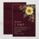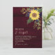 Convite de casamento borgonha rústico, elegante, boho, botânico e chic com girassol.