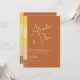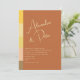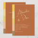 Convite de casamento elegante, moderno, minimalista, moderno, contemporâneo, em tons de laranja queimada e terracota com grafismo simples de letra à mão e monograma no verso.