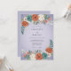 Este design apresenta um fundo suave de lavanda adornado com rosas vibrantes de terracota, azul-turquesa e creme. Folhas exuberantes de eucalipto e ramalhetes delicados de bagas criam um arranjo botânico rico. Uma estética boêmia caprichosa torna esta obra de arte perfeita para um evento romântico de primavera ou outono.