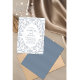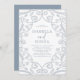 Este é um convite perfeito para o casamento que se sente real e elegante com um pop de brilho azul macio e poeirento de prata, design de renda floral com folhas. Perfeito para qualquer estação.