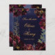 Um convite de casamento naval burgundy com uma sinfonia de peônias vermelhas bordeaux profundas adornadas com spray dourado e contornos dourados brilhantes reunidos em torno de um fundo de lavagem de aquarela azul marinho com seus nomes grandes em letra maiúscula rústica dourada com uma fonte sem serifa anunciando seus detalhes.