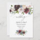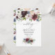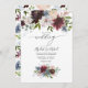 Crie uma impressão duradoura com este elegante convite para o casamento floral, com um arranjo espantoso de burgundy, blush, azul empoeirado e florescências de marfim com sotaques verdes exuberantes. Perfeito para casamentos românticos, jardineiros ou temáticos rústicos, este design personalizável vai cativar seus hóspedes e dar o tom para seu dia especial