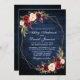 Clorideira Moderna Borgonha Floral Azul Dourado Geométrico Convite para Casamento - Madeira Azul Rústica