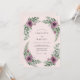 Este design apresenta uma paleta romântica de aquarela com flores profundas de ameixa e roxo suave contra um delicado fundo rosa avermelhado. Folhas de eucalipto verde salvia exuberante e frondes de samambaia texturizadas criam uma estética natural e botânica perfeita para um evento de primavera ou verão. As papoulas delicadas em aquarela e a folhagem caprichosa oferecem uma atmosfera graciosa e sofisticada.