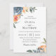 Linda aquarela, azul ardósia e pêssego, flores botânicas e folhagem, convite para casamento. O estilo e a cor da fonte podem ser personalizados. A parte traseira da placa apresenta cor azul estável.