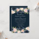 Convites Casamento Botânico Blush Azul-Marinho Profundo