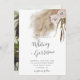 Boho e cartão de convite para casamento botânico moderno, com ilustração aquosa da grama pampas com flores rosa. Perfeito para o seu casamento no deserto!