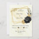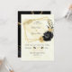 ouro elegante e flores pretas convite para casamento geométrico botânico Os detalhes da brilha são simulados