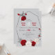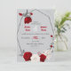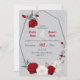 belíssimas flores vermelhas e brancas e cinzas folhas convite geométrico para casamento
