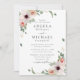 Um convite de casamento elegante e moderno, com estilo boêmico, pintou flores cor-de-rosa pinceladas.