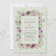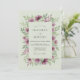 Este design apresenta uma paleta de verde suave salgueira adornada com um arranjo exuberante de papoulas roxas delicadas em aquarela e folhagens verdes. Esses elementos botânicos criam uma atmosfera romântica e arejada, perfeita para um evento de primavera ou verão. Tons profundos de ameixa contrastam lindamente com o fundo pálido, oferecendo uma estética inspirada no vintage para o seu dia especial.