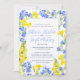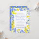 Belo convite de casamento floral de flor silvestre, com excesso de velocidade, ervilhaca amarela e antiríndio. Sombreado em azul bonito, amarelo, verde e branco. Edite este convite com suas próprias palavras e detalhes do evento de casamento. Outros itens correspondentes estão disponíveis. Design único e pintura de mão botânica de belas-artes, de cor aquática original, por Sarah Trett, para www.mylittleedenweddings.com no zazzle.
