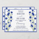 Este cartão de informação de convidado personalizável foi projetado para combinar com nossa coleção de casamento Blue Cornflower. Um design delicado com flores de milho e verde em um quadro de na moda. Salve o papel, incluindo informações detalhadas na parte traseira da preferencialmente do convite, em vez de em um cartão fechado separado. Inclua também informações de RSVP se seu convidado responder eletronicamente (opcional). Ver outros produtos similares da OliaArtPositive.
