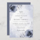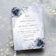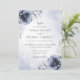 Um elegante convite de casamento floral moderno, com flores poeirentas de cor azul-d'água com caligrafia manuscrita.