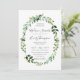 Este convite para o casamento de chic tem uma elegante cor d'água verde, uma coroa oval e uma folhagem de folhas. Projetado para combinar com nossa coleção de casamento Lush. Personalize-o com seus detalhes de forma fácil e rápida, basta pressionar o botão personalizar para reorganizar e formatar o estilo e o posicionamento do texto. Coordenar com seu cartão de recepção, cartão RSVP, cartão de detalhes, cartão de menu, cartões de agradecimentos e muito mais! (c) O Happy Cat Studio