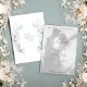 Estes convites para casamentos, lindamente elegantes, de preto e branco são desenhados com galhos de oliveiras pintados à mão num formato decorativo. Personalize com os detalhes do seu dia especial, incluindo um conjunto de fotos e monogramas de casais sob uma camada desbotada, para convites memoráveis clássicos.