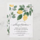 Convide a família e os amigos para celebrar o seu casamento com este elegante convite para o casamento de Verão. Apresentando um fundo texturizado com lindos limões de aquarela, flores brancas e folhagem verde pintada à mão.