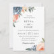 Linda aquarela, azul ardósia e pêssego, flores botânicas e folhagem, convite para casamento. O estilo e a cor da fonte podem ser personalizados. A parte traseira da placa apresenta cor sólida de pêssego.