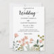 Este convite de casamento simples e moderno apresenta ilustrações botânicas com flores cor-de-rosa corado suaves e caules e folhas verdes. Letras pretas claras e fáceis de ler soletram todos os detalhes do seu casamento.