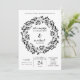 Este design rústico moderno apresenta uma coroa botânica negra, sobre fundo branco. A parte de trás do convite é uma cinza macia coordenadora. Personalize facilmente com suas informações de casamento para uma aparência tradicional e personalizada.
