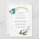 Convites Casamento Botânico Dourado com Azul-Teal Minimalis