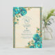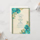 Entra na elegância do eterno com esta vintage teal e design de casamento floral de ouro. Com quadros arquitetônicos de ornamentado, rosas ouros florescentes e padrões de turquesa intrincados, este design é perfeito para casais que adoram uma estética romântica rica. Os tons quentes de vintagem, aliados ao detalhado trabalho de arte floral, criam um sentimento luxuoso e sofisticado, ideal para comemorações formais e de destino.
