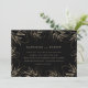 Convite de casamento elegante em um esquema de cores preto e ouro com botânicos e monogramas modernos que podem ser facilmente personalizados.