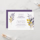 Linda, moderna e elegante para sua celebração. Botânica de cor d'água roxa com folhagem dourada e confete de brilho de lavanda esparramado nas bordas. Texto personalizável criado para você.
