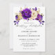 O Elegante tema do casamento roxo com ouro roxo. Convite com elegante buquê de roxo roxo, índigo, ouro, flores rosa de cor amarela e folhas de eucalipto. Entre em contato comigo para obter ajuda sobre a personalização ou se você precisar de outro produto com este design.