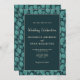 O Elegante Turquoise Leaf Pattern Botanical Wedding Invitation. Folhas de turquesa sobre fundo escuro. O padrão folha enquadra o texto. O padrão das folhas está do lado de trás. Você pode personalizar facilmente todo o texto - personalizá-lo com o nome da noiva, o nome do noivo, a data e hora, o local e alterar ou apagar qualquer texto no cartão.