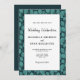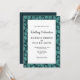 O Elegante Turquoise Leaf Pattern Botanical Wedding Invitation. Folhas de turquesa sobre fundo escuro. O padrão folha enquadra o texto. Você pode personalizar facilmente todo o texto - personalizá-lo com o nome da noiva, o nome do noivo, a data e hora, o local e alterar ou apagar qualquer texto no cartão.