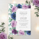 Estes elegantes convites para o casamento apresentam uma massa floral empoeirada de cor aquosa moderna, rosas azuis marinho e design de folhagem de eucalipto. Personalize com seu texto. Os produtos de suíte de casamento também estão disponíveis.