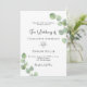 Um fundo branco decorado com cinzas de eucalipto verde. Personalize e seu nome e detalhes da cerimônia. Letras pretas coloridas. Fundo: fundo verde