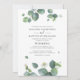 Convocação para casamento moderno Elegante Eucalyptus Greenery que você pode personalizar facilmente clicando no botão "Personalizar". Apresentando um design minimalista com tipografia de tendência e layout em fundo branco. Também redefinir o propósito de outros eventos especiais, como aniversários, chás de panela, aniversários