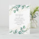 Convide seus convidados para seu dia especial com esses convites de casamento bô-eucalipto. Projetado com elegantes folhas de eucalipto aquáticas e sopros verdes, este moderno, porém eterno, é perfeito para casais que amam uma estética natural e terrestre. O layout minimalista combinado com o charme botânico cria um aspecto romântico e fresco, ideal para casamentos rústicos, boêmicos, jardins ou ao ar livre. Personalize com seus detalhes de casamento para criar um convite único que reflete maravilhosamente sua história de amor.