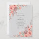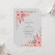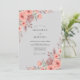 Flores delicadas de coral e folhagens suaves criam uma estética romântica e naturalista. Este design evoca uma atmosfera suave e arejada com seus tons rosados e terrosos proeminentes, ideal para uma ocasião serena e temática botânica.