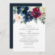 Convites Casamento Botânico Floral Azul Burgundy Marinho Mo