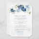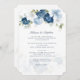 Personalize este convite de casamento clicando no botão "Personalizar" acima. A carta apresenta um moderno e elegante chic com flores azuis empoeiradas, de cor branca, azul claro e verde-oliva. TIP: Excelente para festas surpresa, chás de fraldas, recepções de casamento e festas de aposentadoria.