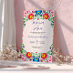 Este design de Convite Floral Botânico Colorido Fiesta Mexicano apresenta uma vibrante borda floral com padrões simétricos de flores vermelhas, azuis, rosa e amarelas, criando um quadro vivo e alegre ao redor da área central. Pequenos motivos cardíacos são intercalados entre as flores, acrescentando um toque de calor e romance à composição. O uso de cores arrojadas e formas florais estilizadas captura uma estética festiva e inspirada no povo que seria ideal para uma festa de noivado celebratória.