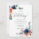 Convite para casamento floral de cor d'água elegante. Belo convite para o casamento floral moderno, com flores pintadas à mão em azul marinho e laranja queimado com um roteiro elegante de caligrafia. Você pode personalizar o texto, o estilo da fonte, a cor e o tamanho em frente e atrás do convite. Por favor, sinta-se à vontade para contactar-me para obter os itens correspondentes.
