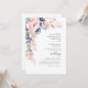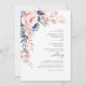 Flores rosa elegantes convite de casamento floral azul que você pode personalizar facilmente com seus detalhes clicando no botão "Personalizar". Apresenta a tipografia popular moderna com texto de script a preto sobre fundo branco DICA: produtos correspondentes disponíveis abaixo para sua conveniência