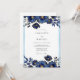 Anémonas em aquarela azul real profundo são acentuadas com contornos met́alicos dourados delicados para criar uma estética sofisticada. Folhas e brotos navy exuberantes ficam no topo e na parte inferior do layout branco limpo para um visual refinado. Esta obra de arte botânica apresenta uma paleta elegante e sombria, ideal para uma noite formal ou evento de inverno.