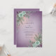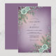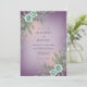 Este design apresenta um gradiente rico de malva empoeirado e pêssego suave, criando um cenário sombrio e romântico. Rosas verdes-menta estão aninhadas entre folhas de eucalipto silvery sage e samambaias etéreas, decorando os cantos com detalhes artísticos. As botânicas de tons frios fornecem um contraste marcante contra os tons roxos quentes e atmosféricos.