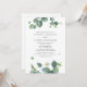 Personalize facilmente este modelo de convite de casamento botânico com uma folhagem de eucalipto verde adorável e tipografia moderna em fundo branco. Perfeito para combinar com a cerimônia temática de verde.