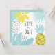 Casamento botânico moderno de verão Salve a data. O cartão tem um padrão simples e brilhante de folhagens tropicais. Parte de uma coleção de casamento. Confira minha loja para ver todo o conjunto de casamento para este design!
