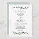 Aqui está uma simples e moderna escolha de convite para casamento para vocês amantes de verde e todas as coisas naturais e bonitas. O design apresenta duas imagens folígicas graciosas na parte superior e inferior da placa. No centro estão as suas informações de casamento. O verso da carta é uma sombra de verde pálido e poeirento que complementa a folhagem na frente. Você pode adicionar uma foto ou qualquer informação que queira na parte traseira do cartão. Por favor, veja a suíte de casamento para outros produtos usando esta design. Se você tiver uma pergunta sobre design ou quiser ver este design em outro produto, por favor, sinta-se à vontade para entrar em contato comigo em jschmidtdesignworks@gmail.com. Design © Judith Schmidt.