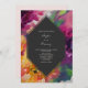 A pintura de óleo de casamento botânico inspirou design com flores verdes e multicoloridas. Texto branco sobre a design geométrica da cinza escura no centro.